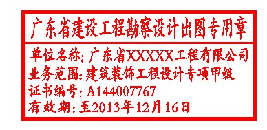 根據(jù)廣東省建設(shè)廳粵建設(shè)函[2008]8號(hào)文件要求,設(shè)計(jì)出圖專用章更改樣式與材料,具體要求如下: