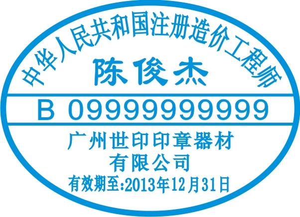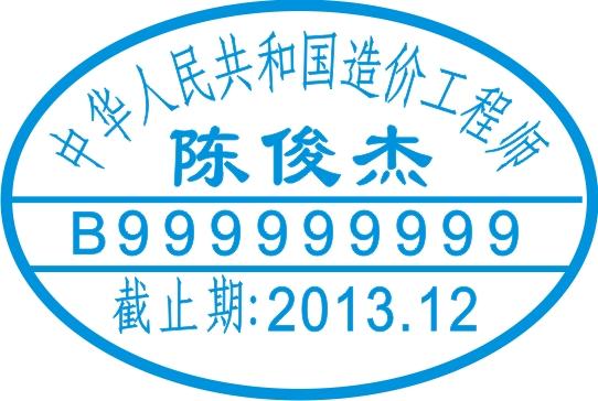造價(jià)工程師章為橢圓形,尺寸:50X35mm,藍(lán)色印章,上方為:中華人民共和國(guó)注冊(cè)造價(jià)工程師,中間為注冊(cè)號(hào),下方為注冊(cè)有效期,新版的還在注冊(cè)號(hào)和有效期之間加入了注冊(cè)單位。