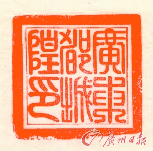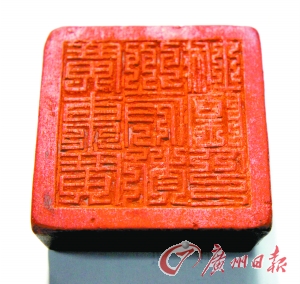 一枚刻有“廣東廣州府都城隍印”的九疊篆木刻印章近日在廣州被發(fā)現(xiàn),這是迄今為止廣州城隍廟首次發(fā)現(xiàn)的九疊篆印章,這也是本報(bào)發(fā)現(xiàn)的第二枚與廣州城隍廟有關(guān)的印章。經(jīng)過廣州篆刻專家、廣州嶺南印社執(zhí)行社長(zhǎng)李海鑒定,這枚城隍廟印章具有晚清官印的特征。