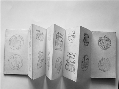 從印章集上看,這些印章均是在1940年和1941年兩年時間內(nèi)加蓋上去的,基本覆蓋了偽滿洲國的全境。這些印章有的是當?shù)氐娘L光,有的是當?shù)氐臉酥拘越ㄖ,有的是偽滿鐵路線圖,有的是日本關(guān)東軍軍人造型,還有日本第一個內(nèi)閣首相伊藤博文的頭像印章,以及開拓團團民的造型印章等。其中,“齊齊哈爾印章”中表現(xiàn)的是當時北關(guān)地區(qū)的標志性建筑,“富拉爾基印章”中體現(xiàn)的是“紅岸避暑場”,“昂昂溪印章”中是早已損毀的“東正教堂”。還有新京、白城子、鄭家屯、雙城堡、德惠、朝陽川、山海關(guān)和扎蘭屯等不同地域的圖案印章。