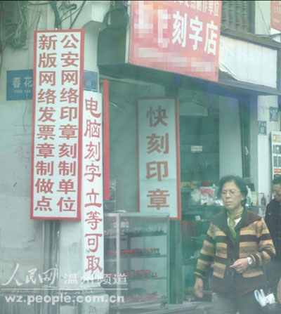人民網(wǎng)溫州11月28日電 (記者 姜偉 黃雪意)如果到溫州的 刻章店刻制一枚公章,除了交基本的刻章費外,店家還會要你繳納60元的“備案費”。而這筆所謂的“備案費”卻提供不了相關(guān)正式憑據(jù)。店家的解釋是,這筆錢是交給溫州新安印章網(wǎng)絡有限公司(以下簡稱新安公司),只有交給該公司后,所刻的印章才會進入網(wǎng)絡備案,才是正式合法。