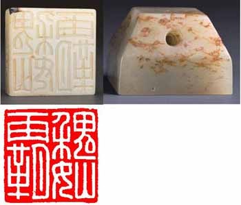 秦滅六國以后,"文字異形"的古文被小篆書體所替代。隨著統(tǒng)一的封建官制的建立,官印的形式出現(xiàn)了新的規(guī)范。秦代官私。饕欠叫魏烷L(zhǎng)方形兩種,施用邊欄和界格,以取得整齊,穩(wěn)重的效果。這些特點(diǎn)在這枚秦官印上可以反映出來。 |