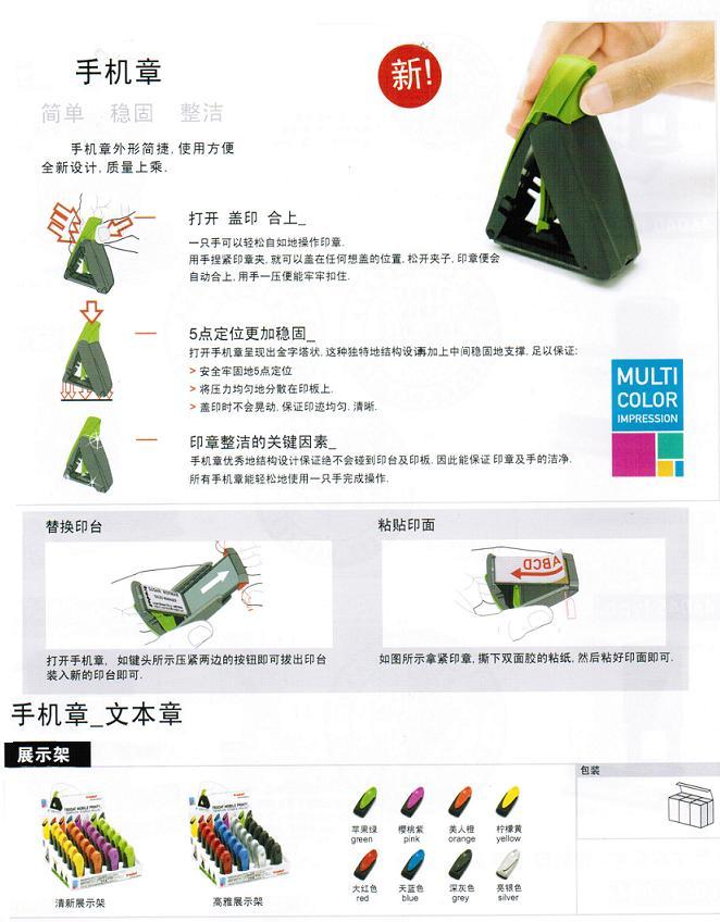 手機式便攜章還有活字自配型供您選擇。您可根據(jù)需要自己在文本印版上排版或改變文本內(nèi)容。