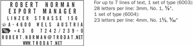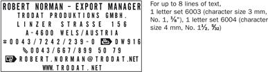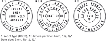 活字自配章具有高度靈活性。您可以根據(jù)需要排版或改變文本。 活字自配章現(xiàn)有輕型和重型回墨印兩種規(guī)格可供選擇。 文本和日期章配有不同規(guī)格的文本印版。