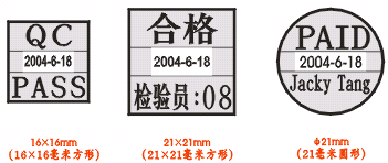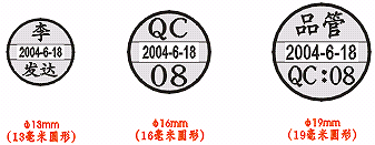 日期印章耐用,耐油,制作簡便,圖文清晰,可反復(fù)使用。適用于工廠、倉庫、銀行財(cái)務(wù)系統(tǒng)。一般客戶用的大都是圓型的小印章,中間有日期,有中文及英文兩種,日期可調(diào),而且本產(chǎn)品20mm以內(nèi)直徑的自帶印臺及盒子,有五種顏色選擇。(尺寸選擇13mm-42mm)